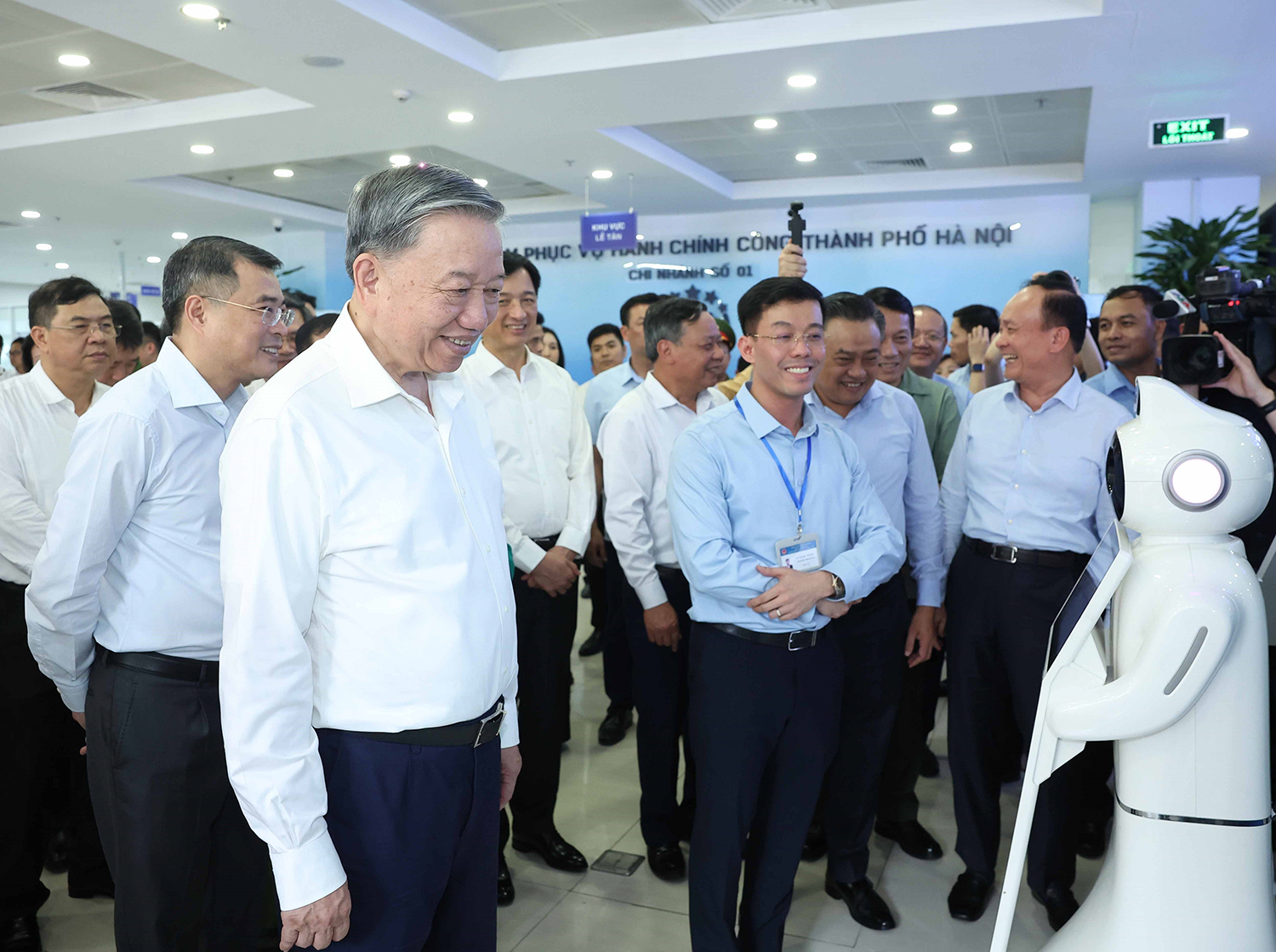 El secretario general del Partido Comunista de Vietnam, To Lam, visita el Centro de Servicios Públicos de Hanoi _Fuente: Agencia Vietnamita de Noticias